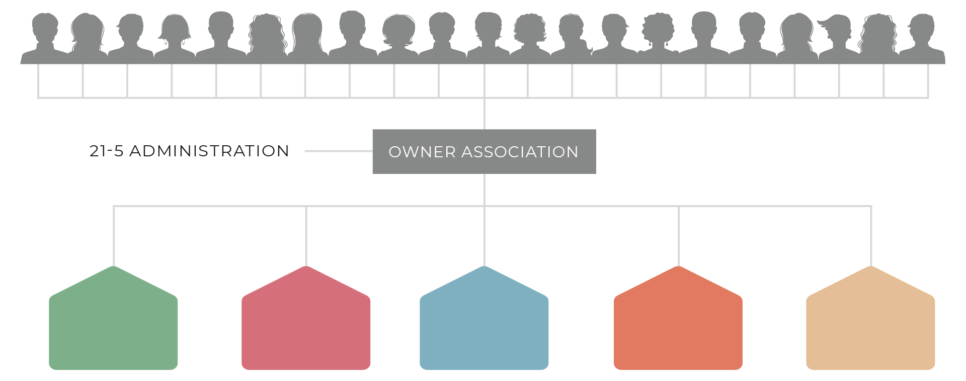 Our model is very simple. We bring together 21 families or individuals to form what we call a 21-5 owner association. We locate, purchase and develop 5 holiday homes in 5 carefully selected destinations for the 21 families. When the homes are ready for use, we act as administrators for the owner association.