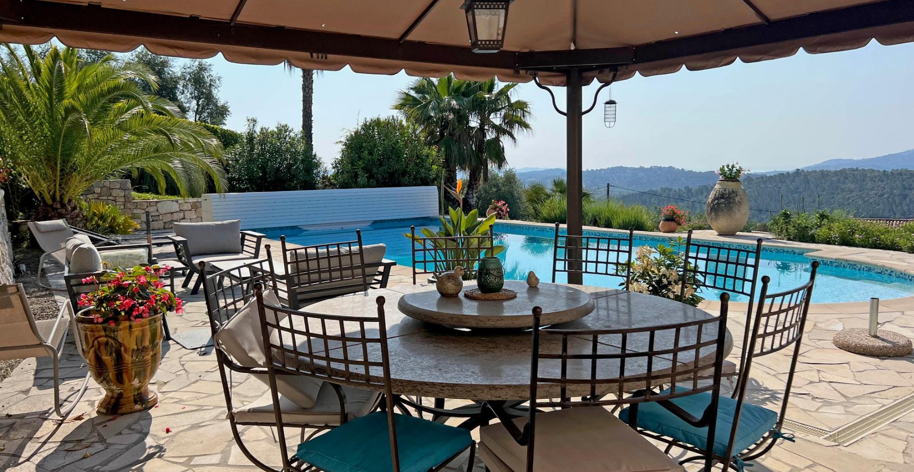 A classic southern French oasis with views, atmosphere and potential. Perched high in the hills, this charming villa offers sweeping panoramic views of the green countryside, mountains, sparkling waters of Lake Saint-Cassien and all the way to the Lérins Islands and the Mediterranean Sea.