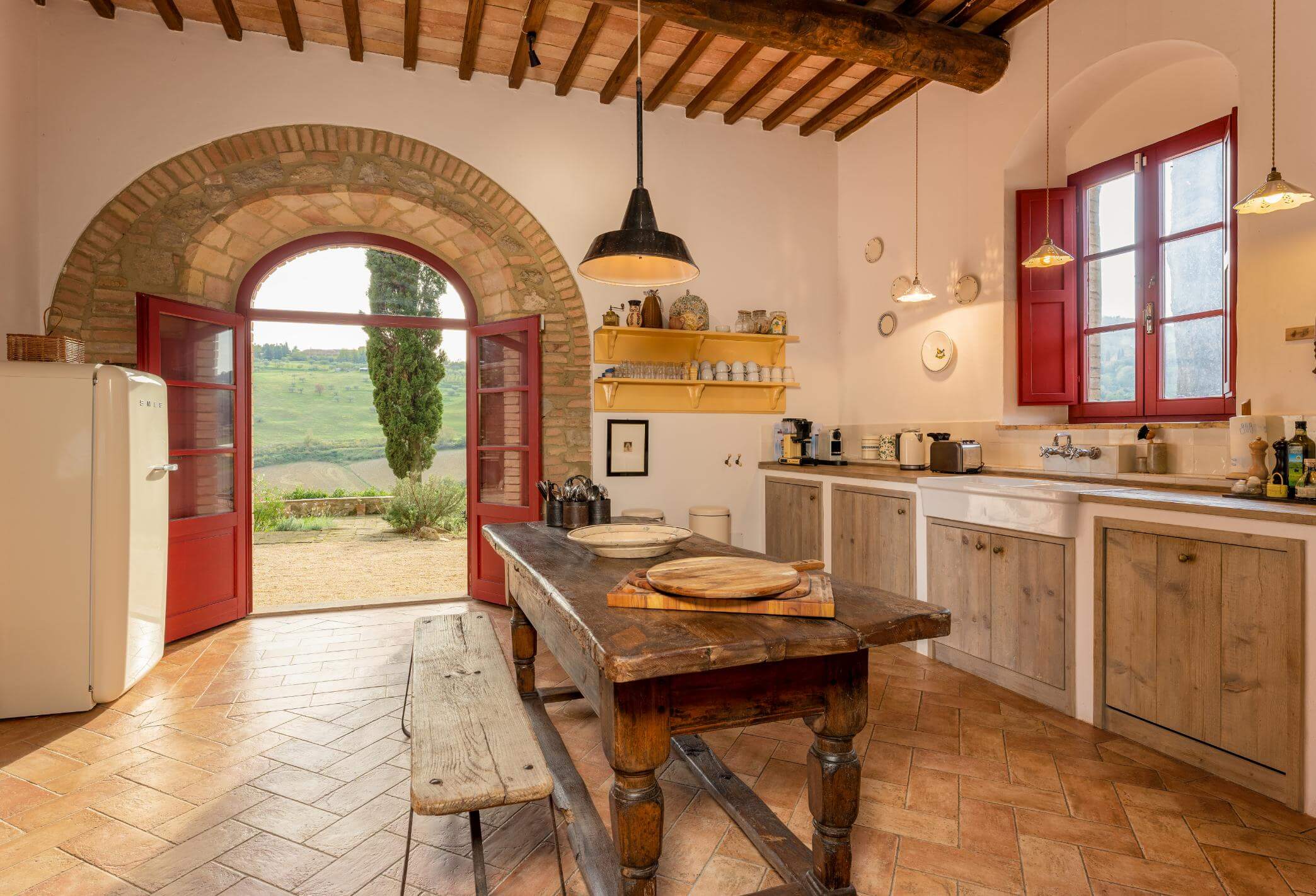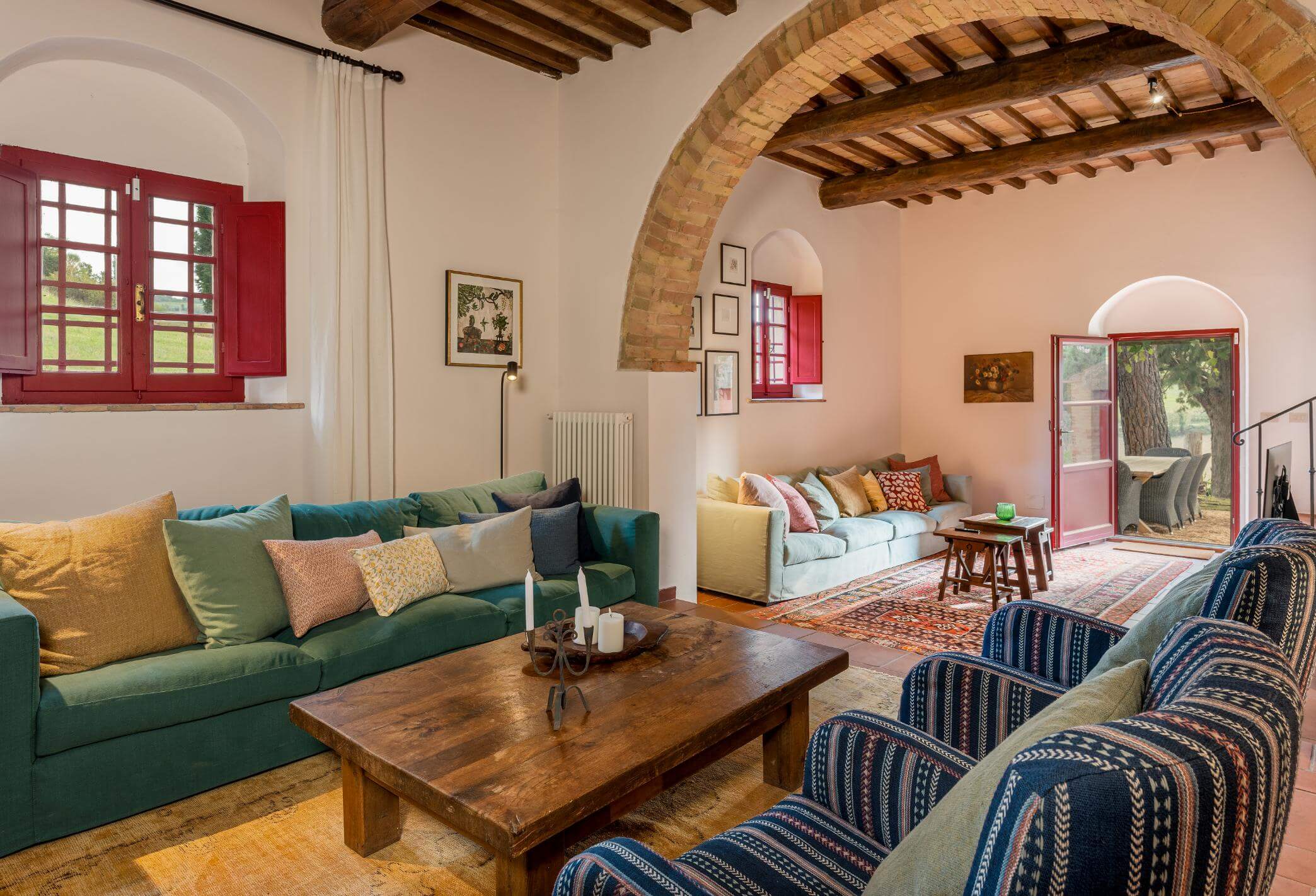 The villa is spacious and ideal for larger groups. The interior has a warm and authentic character with natural materials, light surfaces and details that reflect the Tuscan style. The generous living areas make it easy to socialise, while several bedrooms and secluded corners provide space for rest and private moments.